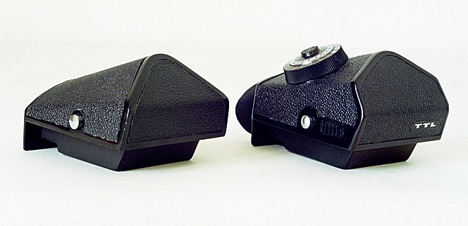 [C436-6] The plain prism obviously lacks both the on-off switch and the metering dial of the TTL prism |