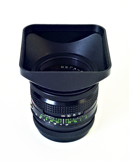 The hood that I received when I bought this lens new in 2001 was in fact the same as the hood that Schneider-Kreuznach supplied with the 80mm lenses, and is even labelled “80”! However, unless one were shooting almost into a light source, the shading provided by this hood would be more than sufficient.